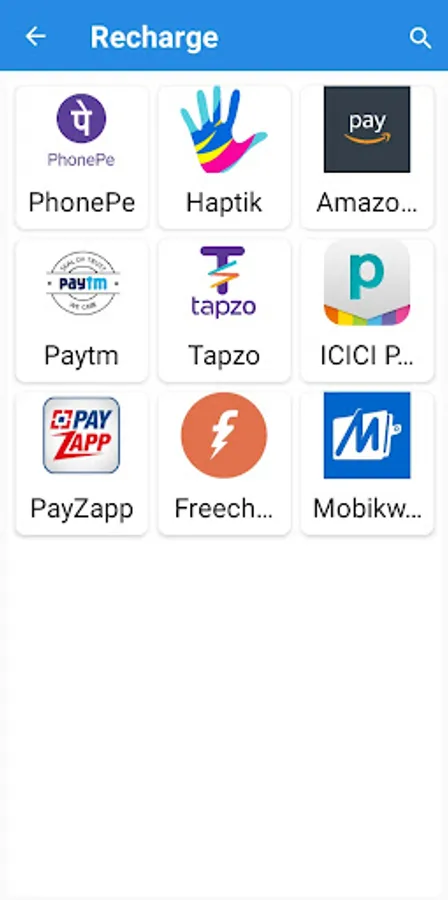 Paytm, Mobikwik, Freecharge, Airtel Wallet, ReachargeitNow, Jio Money,Tatasky recharge app etc