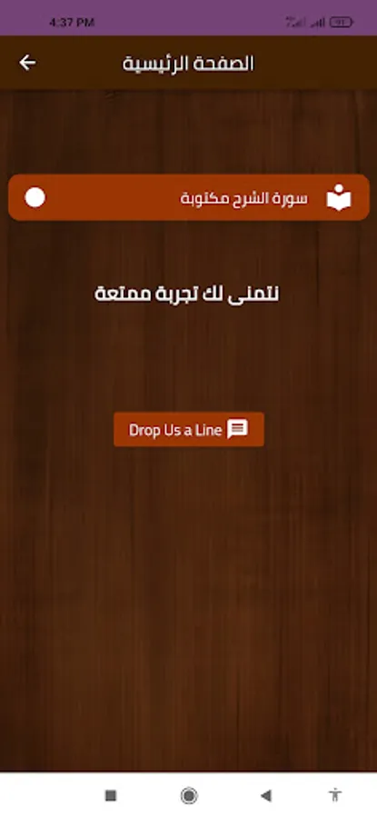 يمكنك التنقل بين أزرار تطبيق سورة الشرح مكتوبة بسهولة