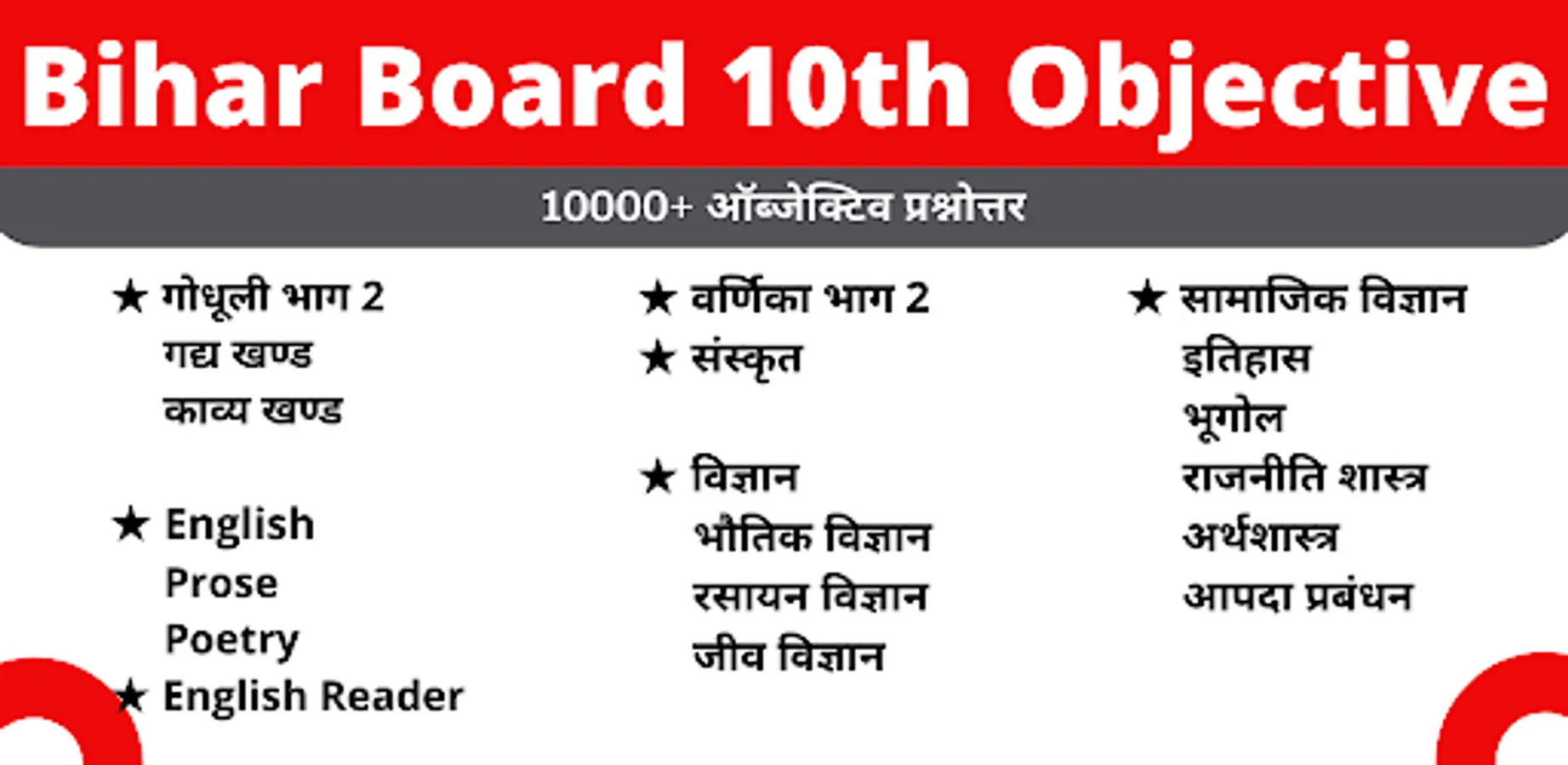 Bihar Board objective tenth model paper question are like mock tests which introduce you to the circumstances of the exam so that you do not panic in exam hall. If you learn how to solve matric model questions papers daily with the help of this app. then you can improve your question solving speed and accuracy. This will help you in reducing the examination stress and also helps in getting good marks in the matric exam.