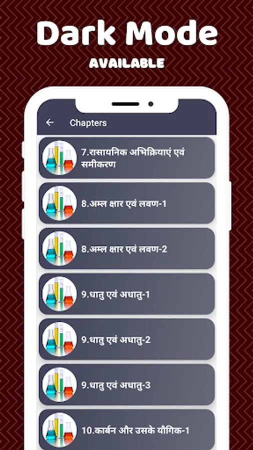 Very easy to use interface, just select an subject, and after that you will get all chapters of selected subject and again click on chapter which you want to learn.