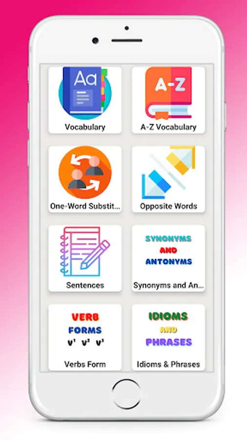 This app cover more than 1000 of topics for English Hindi Vocabulary Grammar learners.