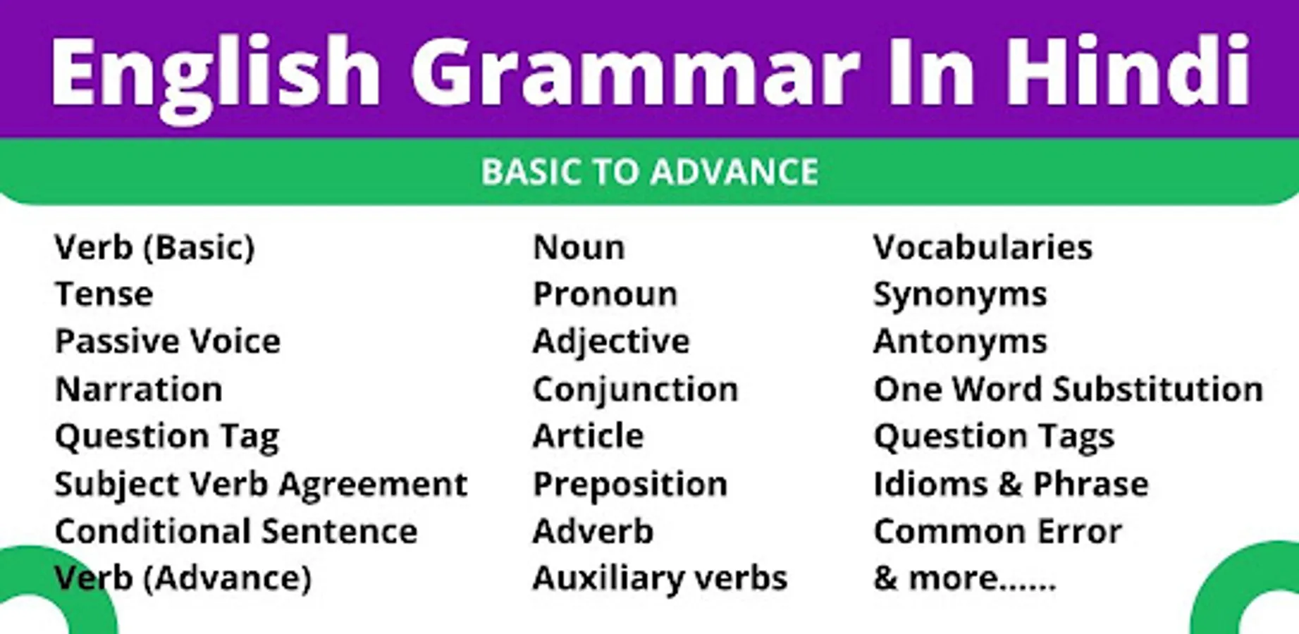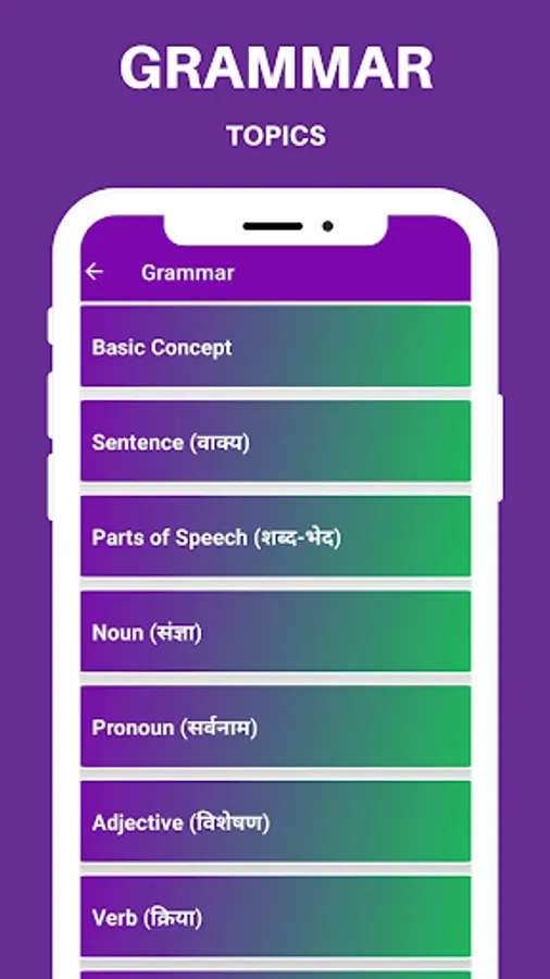 This English Grammar app contains Basic To Advance English Grammar in Hindi and English (Hinglish) language.