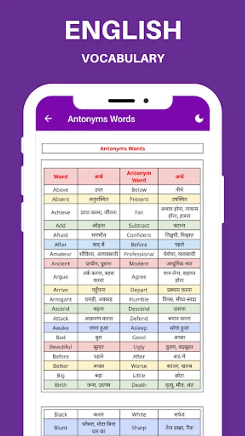 This Offline English Grammar app in Hindi covers all English Learning topics using simple explanations and there are many examples available in Hindi and English languages.