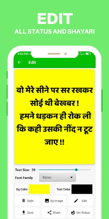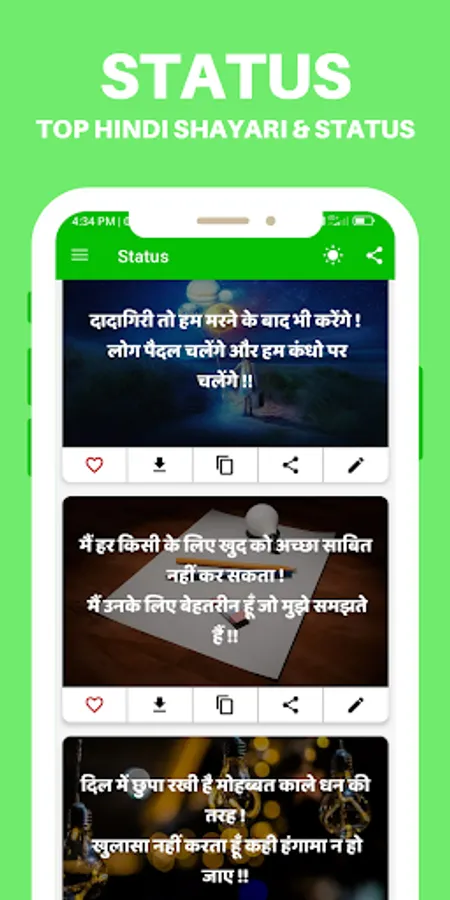 Hindi Shayari and Status is an app that provides users with a vast collection of Hindi shayaris and status. The app is designed for anyone who loves to express their thoughts and feelings through shayaris and status.