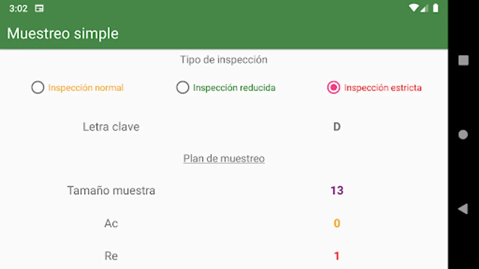 This application is based on the ISO 28591-1 standard inspection simple sampling plan table.