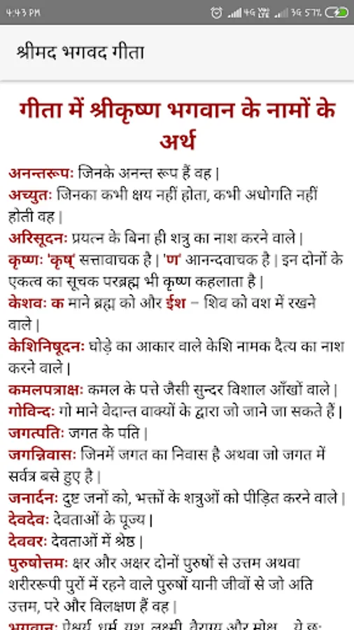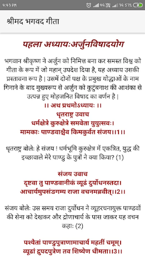 This is complete Application form of Srimad Bhagavad Gita in Hindi, Containing All the 700 Slokas of the 18 chapter's in Hindi language with Brief all slokas in complete hindi language.