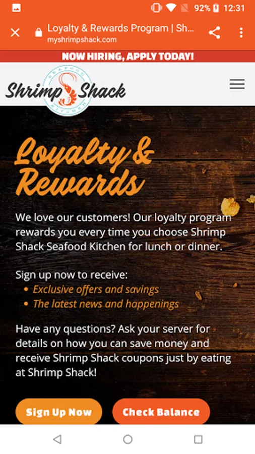 We love our customers! Our loyalty program rewards you every time you choose Shrimp Shack Seafood Kitchen for lunch or dinner.