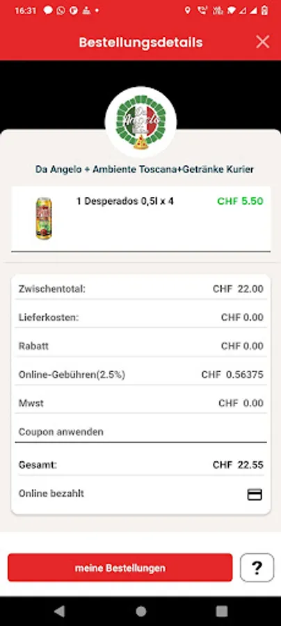 Du hast die Option zwischen Barzahlung bei Lieferung oder einer Online-Zahlung (Kreditkarte, PostFinance oder TWINT)