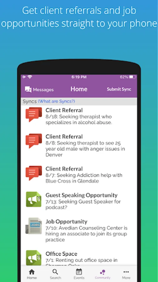 - Get Clients - Can your practice use some more clients? Our referral system will notify you of clients seeking your specialty