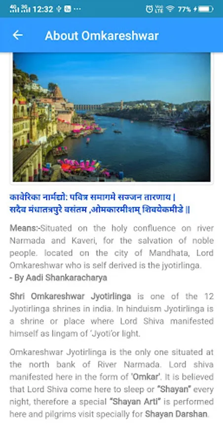 Devotee can avail our Online Services, and information about Shri Omkareshwar Jyotirling through this application.
