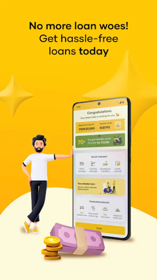 • Two-Wheeler Loan: Get your dream two-wheeler with ease. Apply for a two-wheeler loan, enjoy flexible repayment options and low interest rates.