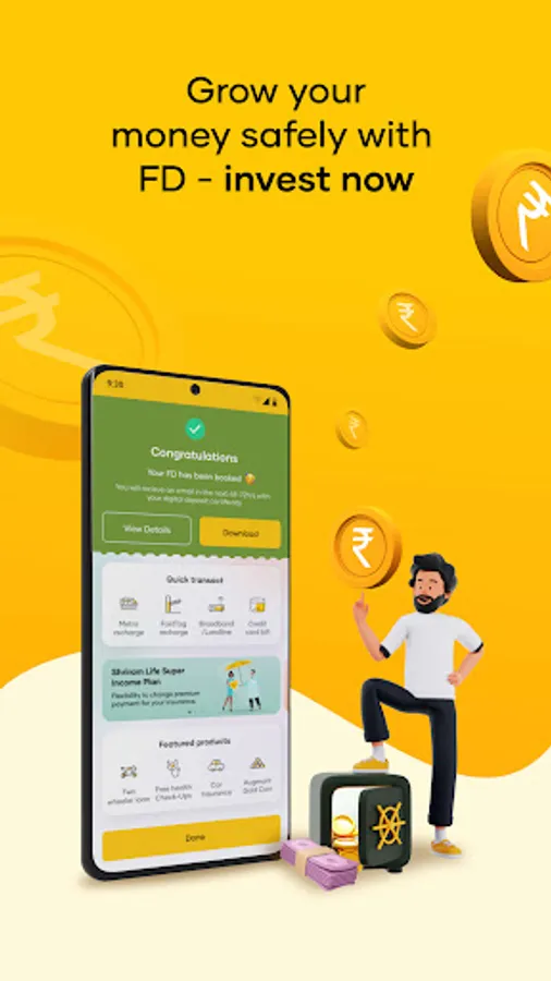 • Fixed Deposit: Secure your future with guaranteed returns and flexible tenures. Invest in a reliable and trusted investment option today.
