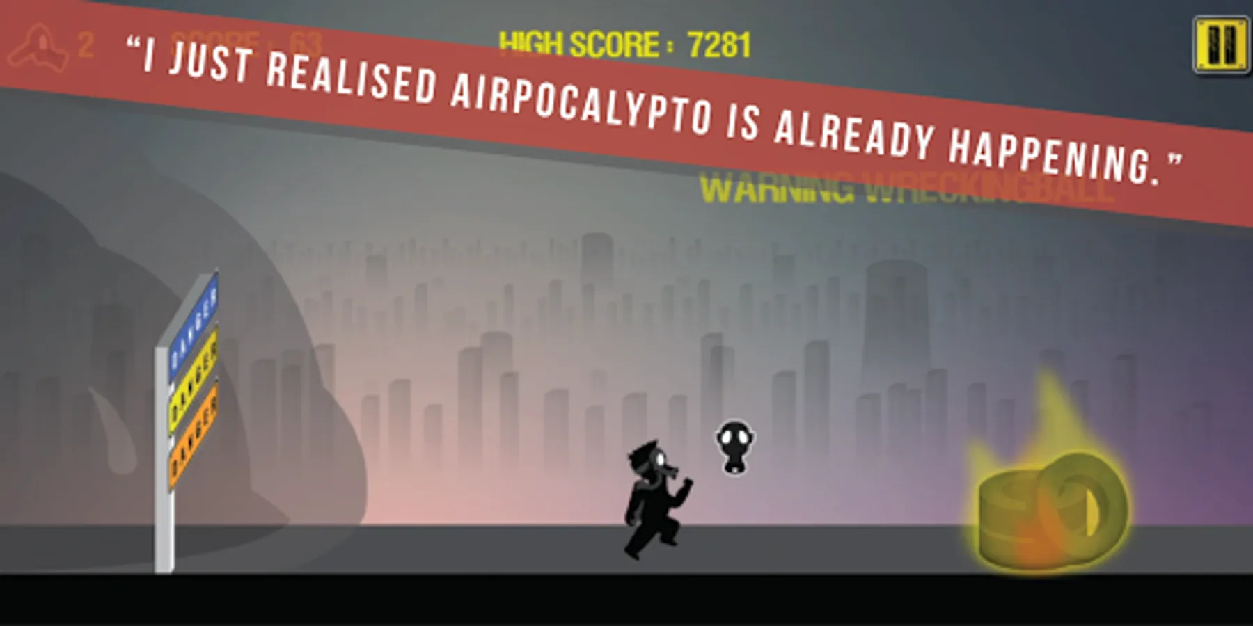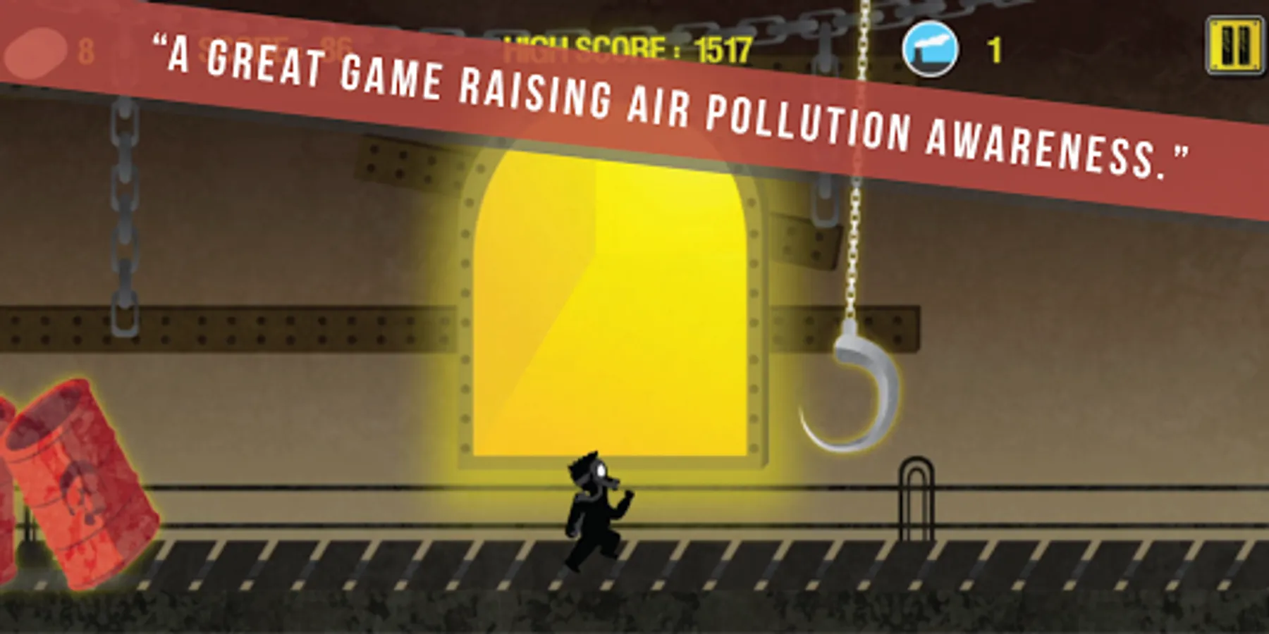 Airpocalypto gives its users an amazing simple picture of a real life polluted city. An endless runner story and a great time killer that makes you wonder what it is like to be on Oxy's shoes.