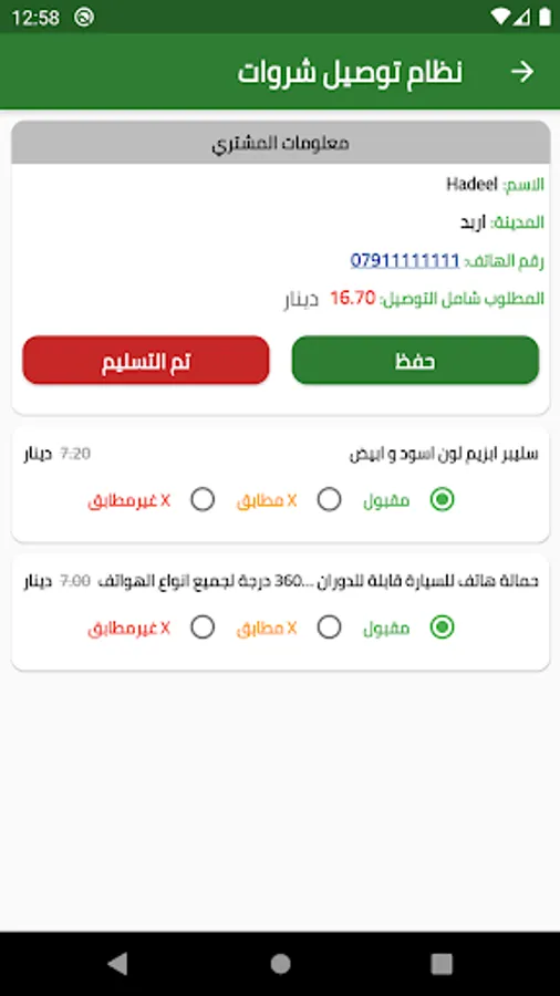 Sharwat Delivery provides all the necessary information for delivery staff for Sharwat electronic commerce to facilitate the delivery process and verify the package specifications match the buyer's request. The delivery hooks guarantee that the delivery representative is provided with the amount to be paid by the buyer.
