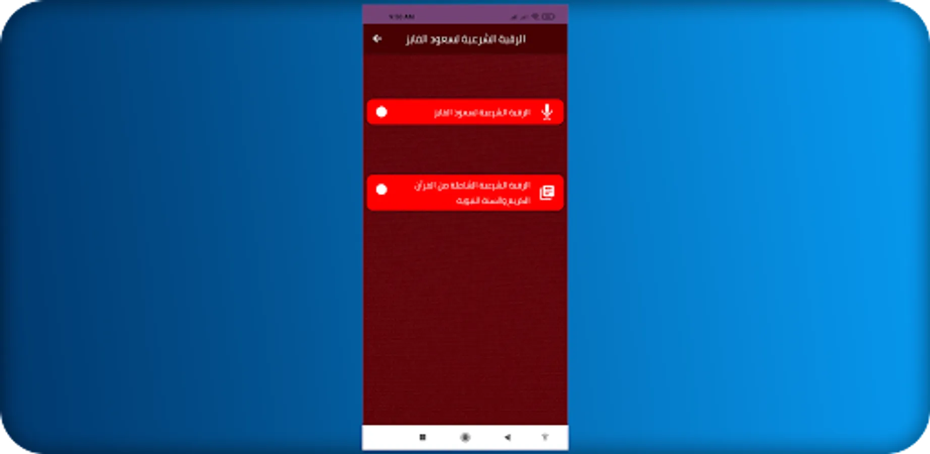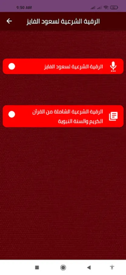 يمكنك التنقل بين أزرار تطبيق الرقية الشرعية لسعود الفايز بسهولة