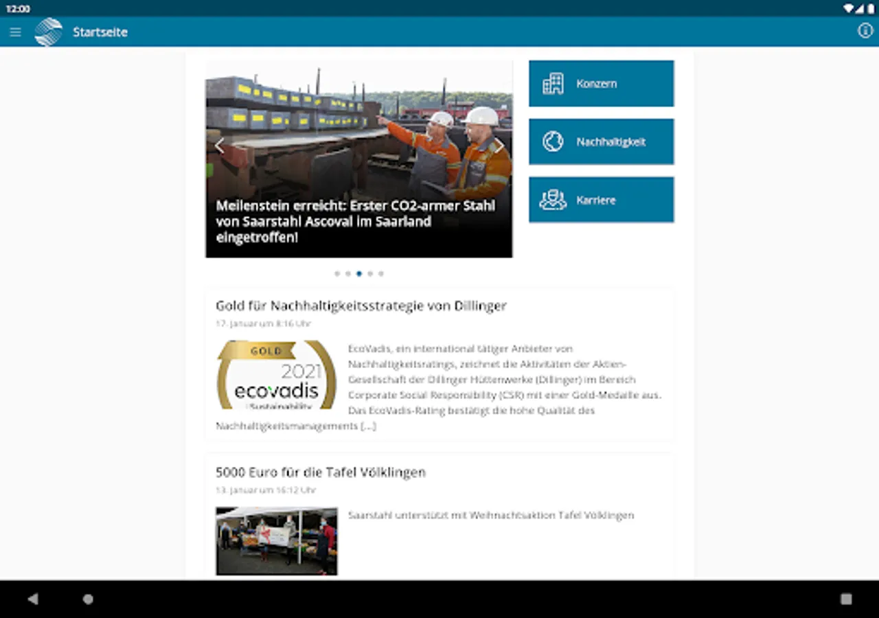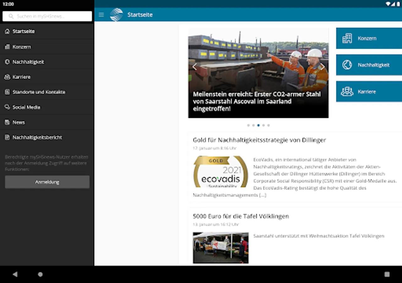 The mySHSnews app is a central communication and information platform of the SHS Group. It offers compact information and news about the company. With mySHSnews you are always and everywhere up to date. Information on careers and job vacancies at Dillinger, Saarstahl and SHS - Stahl-Holding-Saar, on events (trade fairs, conferences, open days, etc.) or on sustainable steel production. The offer is supplemented by various services, direct access to current press releases and access to various social networks and video platforms.