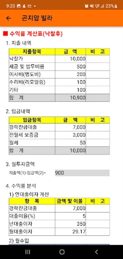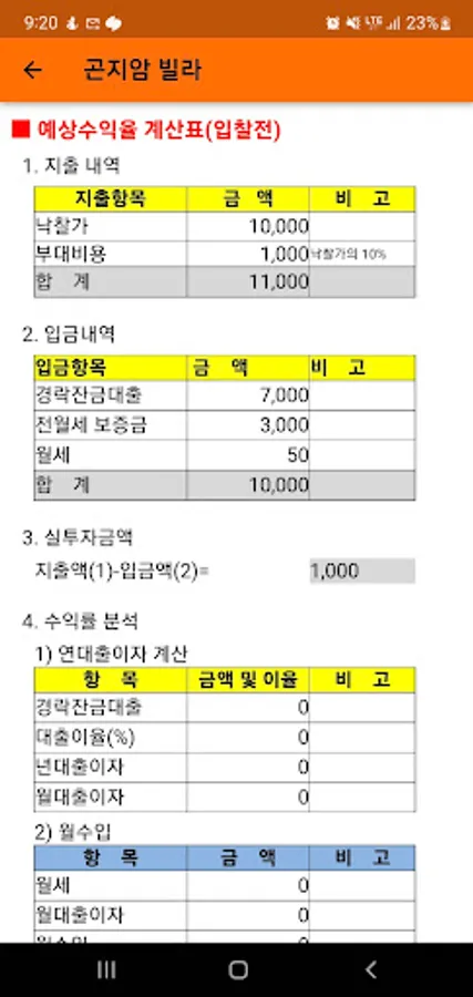 부동산 경매 수익율 분석 계산기