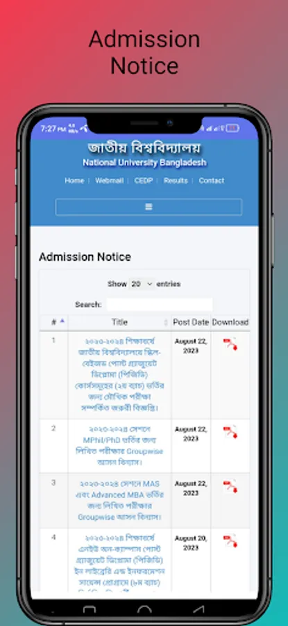 Welcome to the ultimate digital companion for National University students. Our app provides a seamless experience for all your academic needs. Easily apply for online admissions, track your CGPA, and access instant results. Stay updated with real-time notice board notifications and swiftly fill up forms online. The app also grants you access to the latest syllabus, ensuring you're always ahead in your studies.