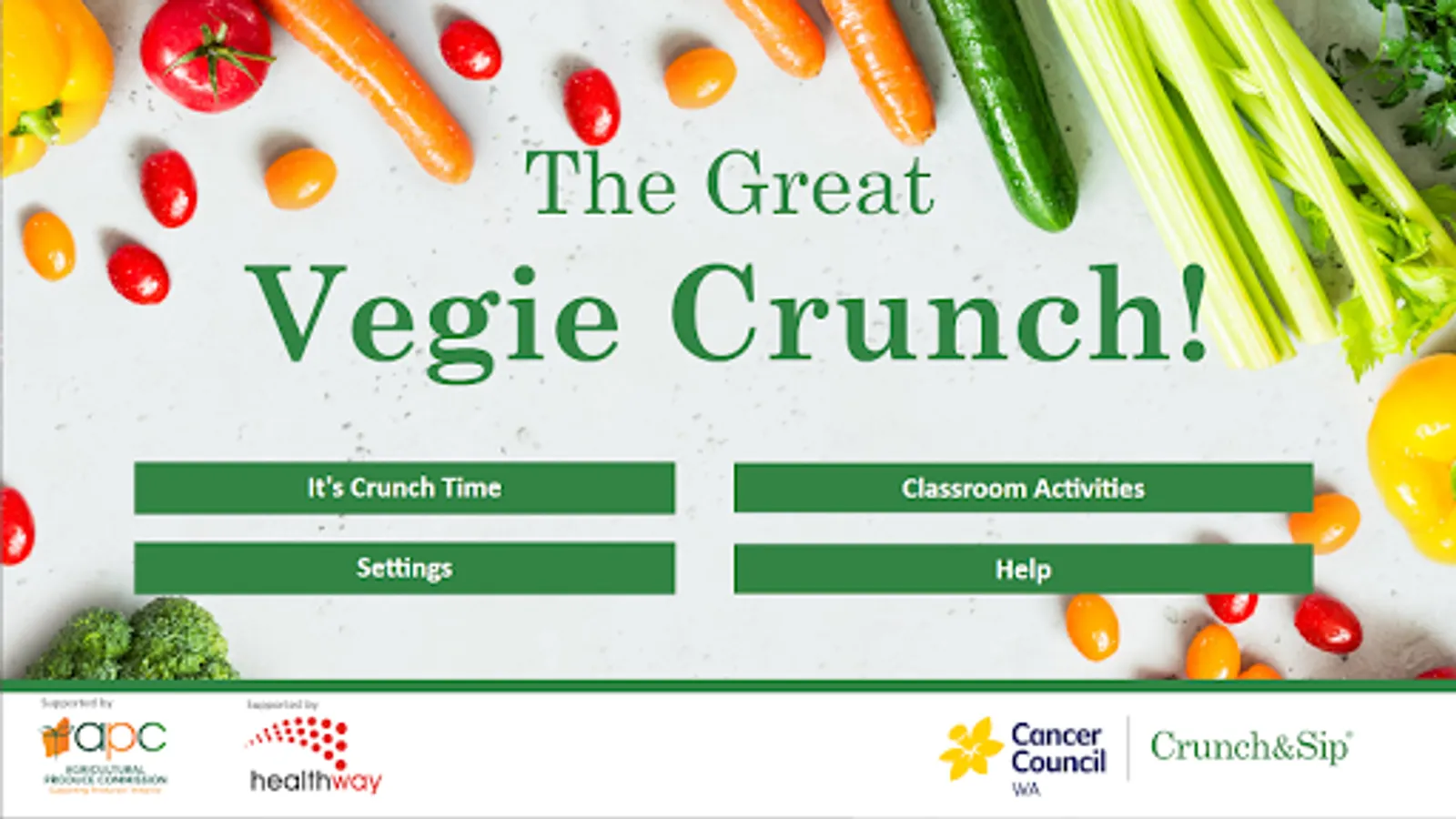 Crunch&Sip App brought to you by the Cancer Council of Western Australia, Crunch&Sip and the Agricultural Produce Commission.