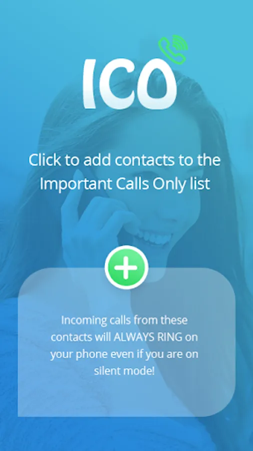 Now you can! With ICO app (Important Calls Only) you will be able to keep your phone on silent mode while setting only your approved contacts remaining on ring mode so you can still hear them calling even when you are in a meeting, not available for anyone else, a sleep or just can’t answer the phone.