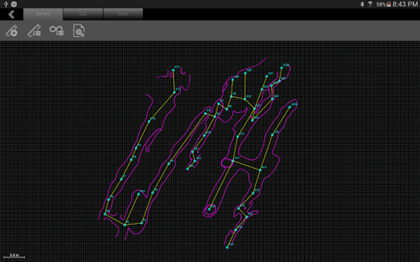 Abris is aimed to make process of surveying faster and easier. Graphical editor was implemented in the app to make the drawing and editing of complex cave walls simple. The centerline is drawn automatically after each shot is added.