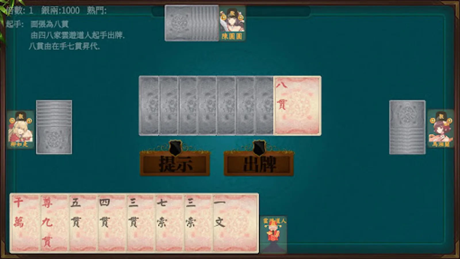 Four people are required to enter the game for the hang card, and each person takes eight cards first, and the remaining eight cards are placed in the middle of the table as hole cards.