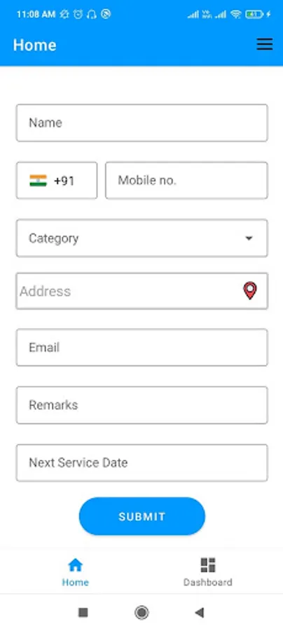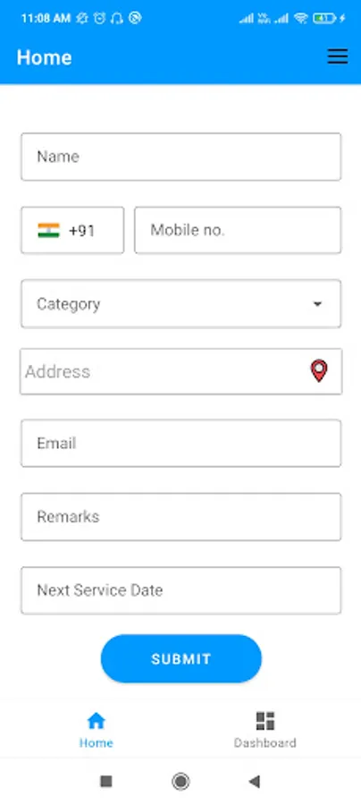 Data entry :- User can enter customer details like- Customer name, Contact no. , address through text and map location, Email, Remark, Category, Next service due date and service date.
