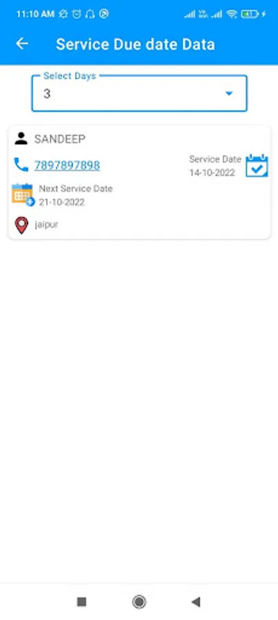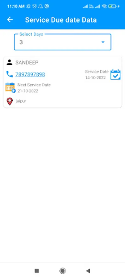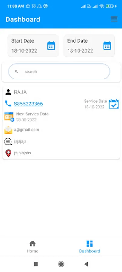 Dashboard:- User can see the data of customer based on customised dates and next service due dates to remind them that their service is due.