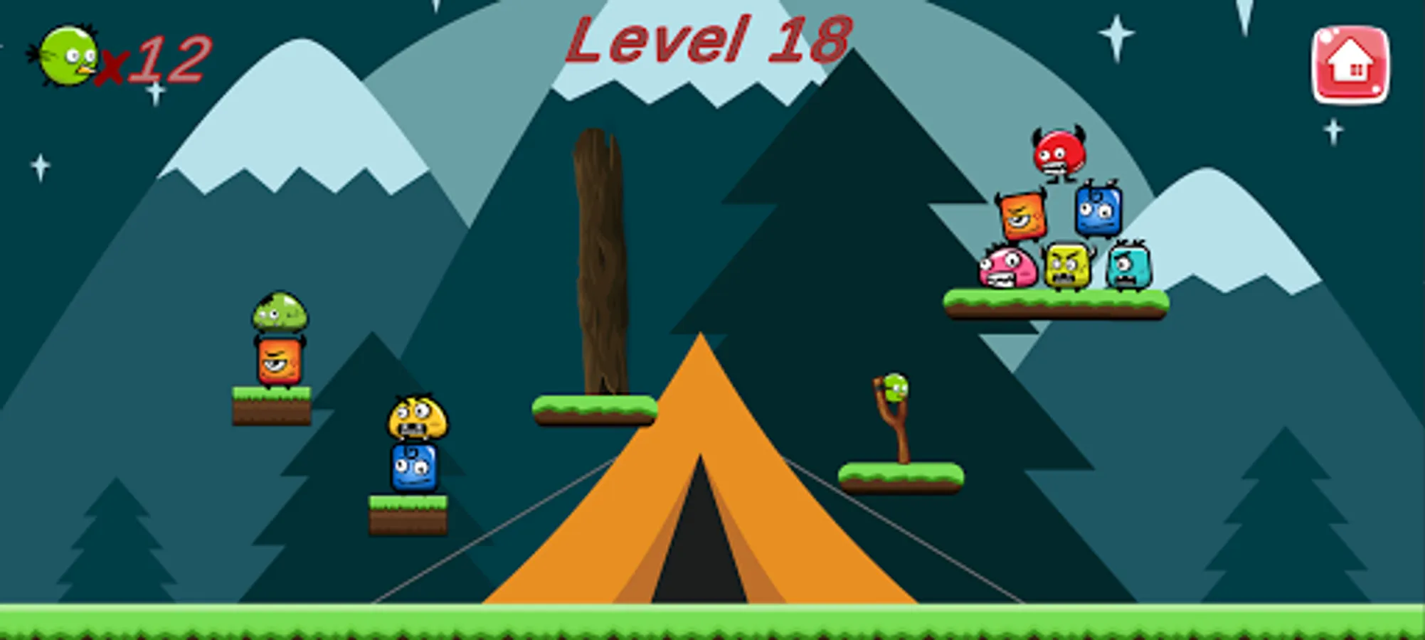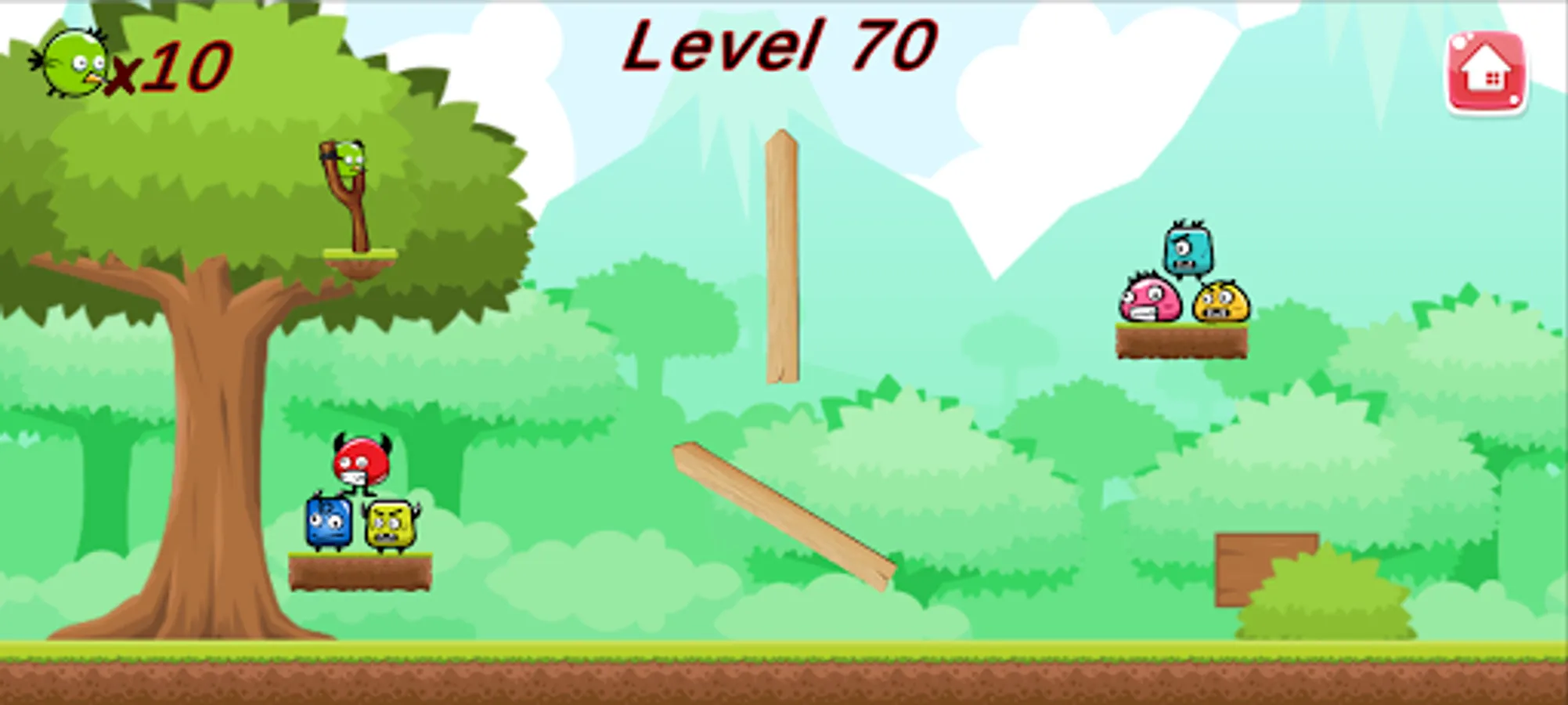Mad Birds is a casual but very adventures game where a catapult is used by the player to add some force into his bird and shoot the obstacles other side to make them fall from there platform and touch the ground. If an obstacle touch the ground it will destroy.