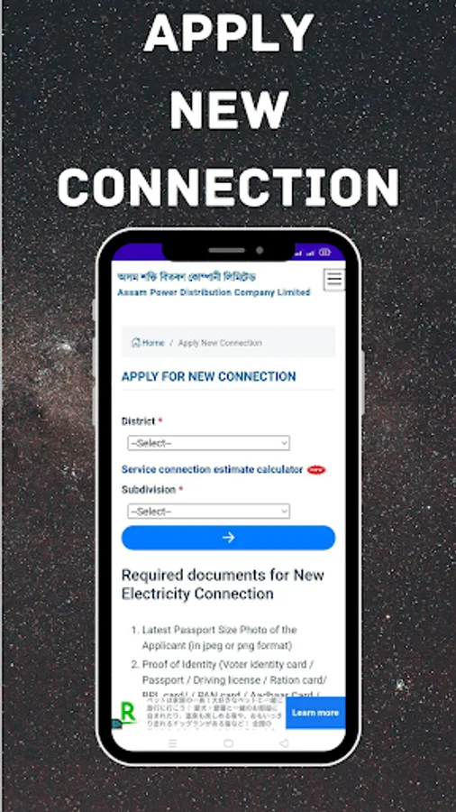 Assam Bijli Bill App is web based official android app of Assam Power Distribution Company Limited. Users can use this app for making an online request for new electric connection, name change, load change, complain. Besides this consumer can also view their energy bill online and pay their energy bill online with receipt and SMS confirmation