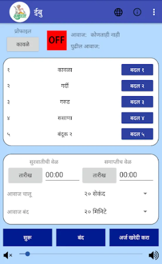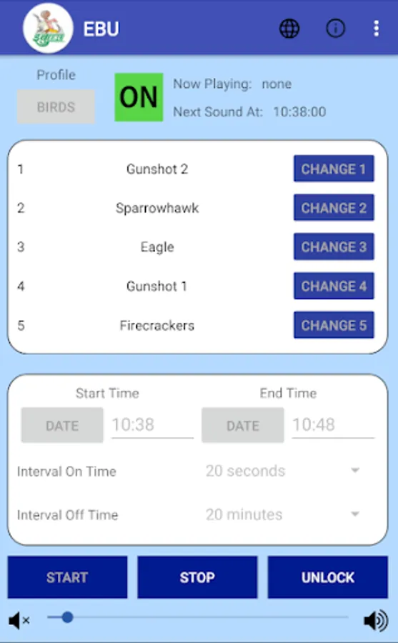 By toggling the settings within the application, you would be able to play sounds which scare away troublesome animals and birds in a repetitive manner based on the setting.