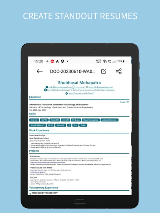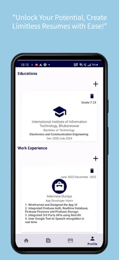 Discover the power of Biocraft, the ultimate app for crafting professional resumes and digital visiting cards! Whether you're a job seeker, a professional, or an entrepreneur, Biocraft empowers you to create impressive resumes and eye-catching digital business cards with ease.