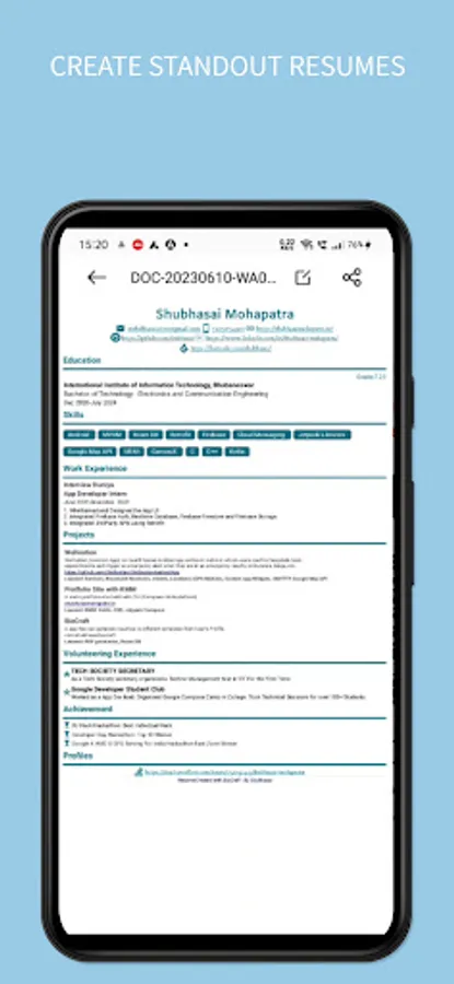 Download Biocraft today and unlock the potential of your professional profile. Stand out from the crowd, leave a lasting impression, and take your career to new heights with our intuitive resume builder and digital visiting card creator.