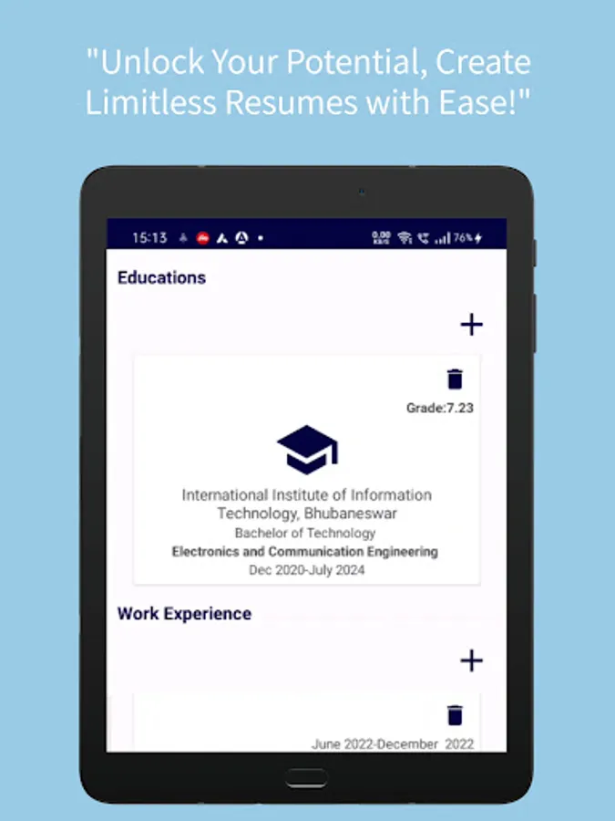 Input your personal details, work experience, education, and skills effortlessly.