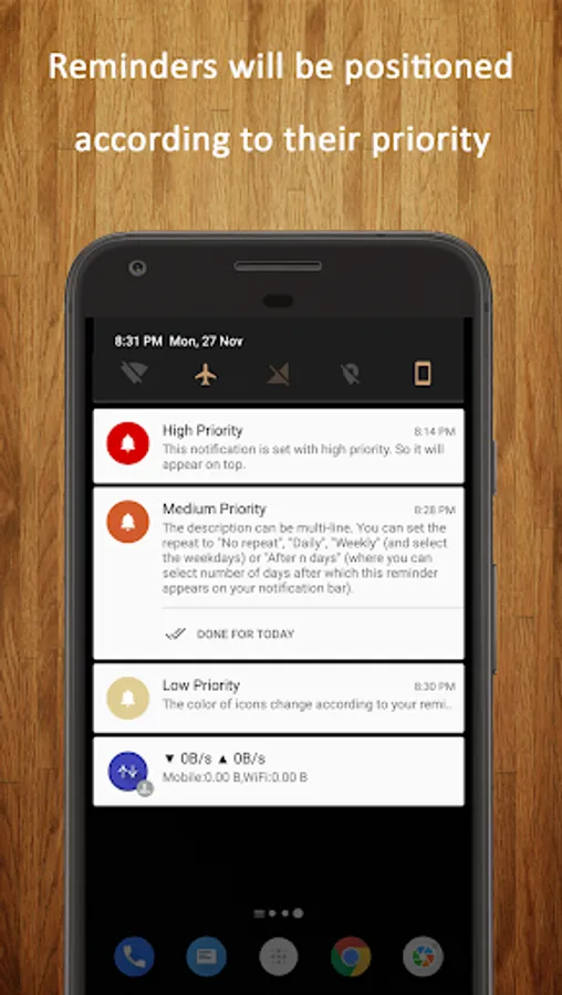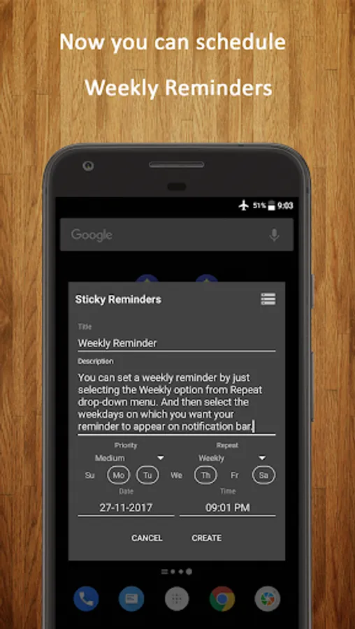 • Prioritize: You can set priority of the reminders. Higher the priority higher is the position on the notification bar.