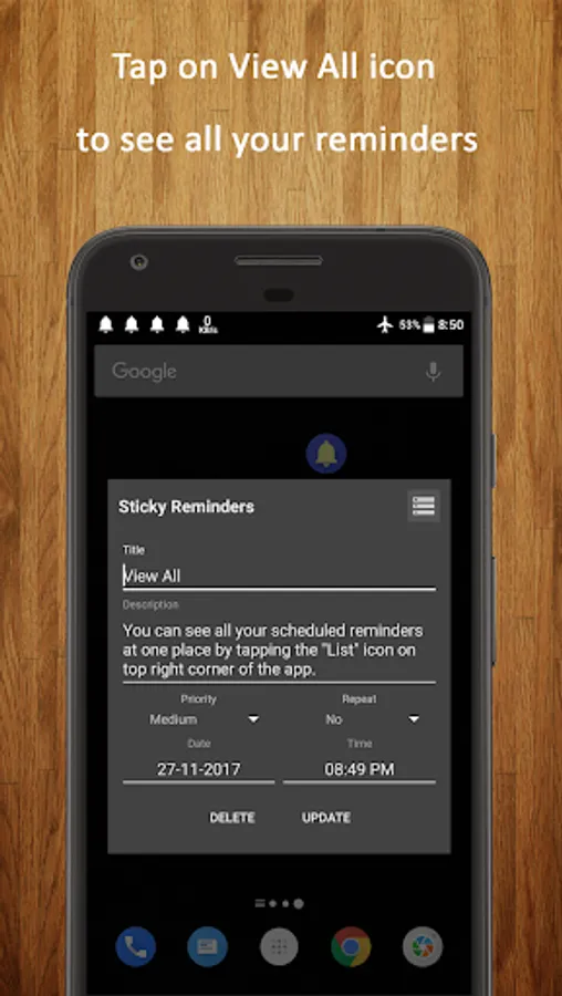 • Don't miss anything even if your device gets rebooted. All the reminders will stay on the notification bar.