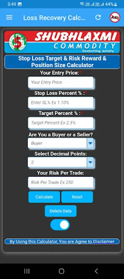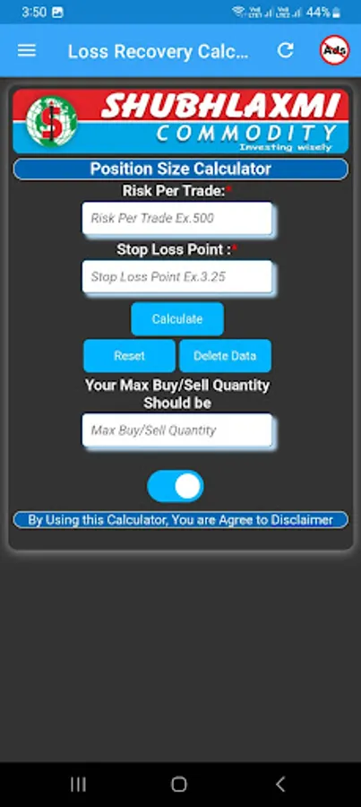 To use the calculator, the trader simply enters the risk per trade, and the stop loss points, The calculator then calculates the appropriate position size based on the trader's input.