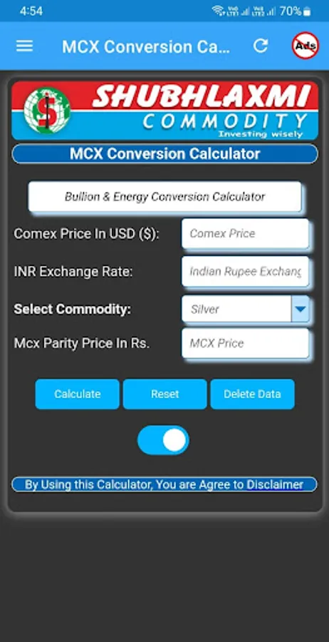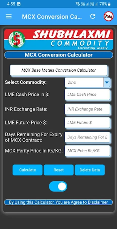 MCX Conversion Calculator. It converts bullion i.e. Gold and Silver, Crude and Copper, and base metal i.e. Zinc, Lead, Nickel and Aluminium prices of US Dollar to Indian Rupees.