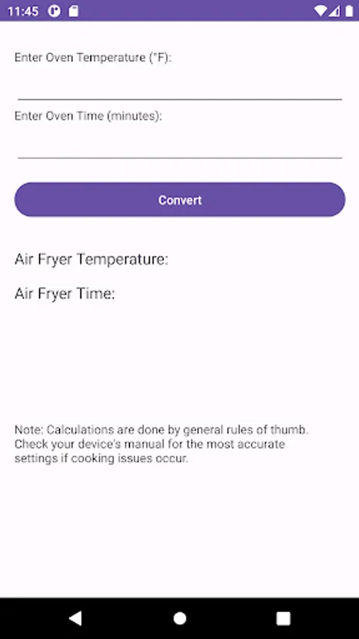 AirMate is a light-weight fast and easy tool for converting oven cooking times and temperatures into air fryer time and temp.