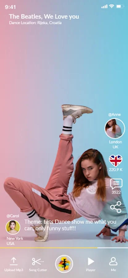 Record yourself dancing to one segment of a popular song, while others record other segments of that same song. Once all clips are recorded, the app automatically merges them, creating a new, unpredictable music video from any song!