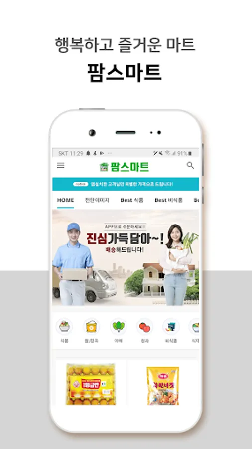 Enjoy the various benefits of Palm Smart Sannae, Palm Smart Unjeong, and Palms Foods Mart Haengsin with your smartphone.