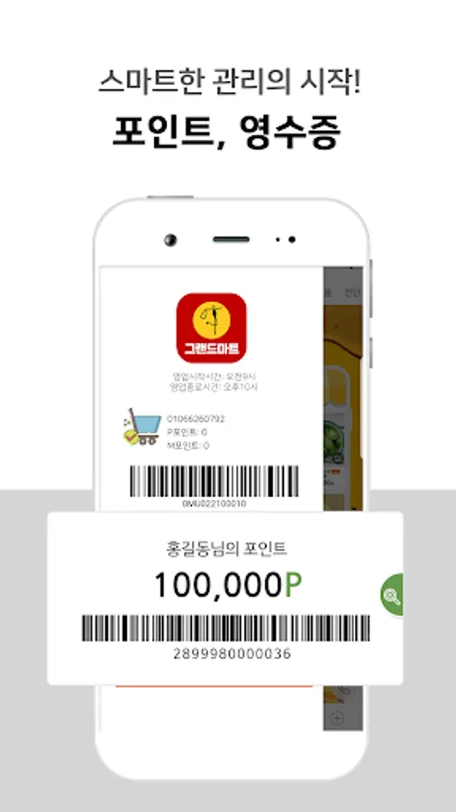 - You can conveniently use the Grand Mart Cheonan point card on mobile and check your points anytime, anywhere.
