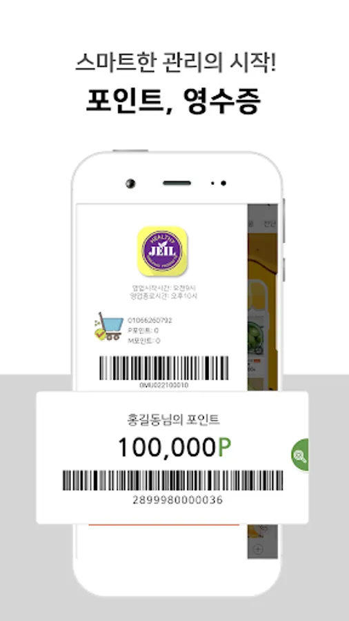 - You can conveniently use the point card of Jeil Food Material Mart Yangpyeong on your mobile, and check your points anytime, anywhere.
