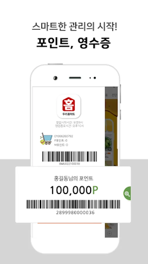 - You can conveniently use the point card of Woori Home Mart Sinheung Branch on mobile and check your points anytime, anywhere.