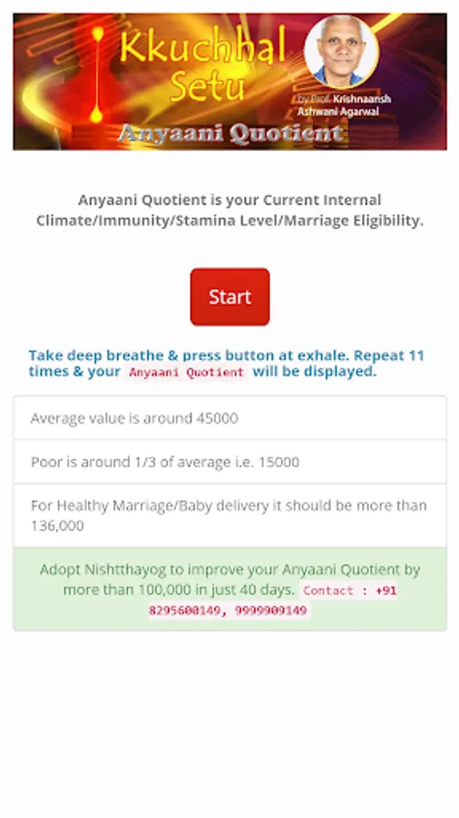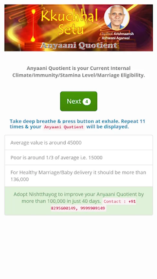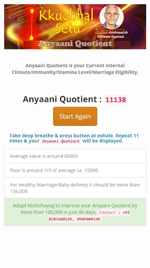 Anyaani Quotient application used to check your Internal Climate/Immunity/Stamina Level/Marriage Eligibility.