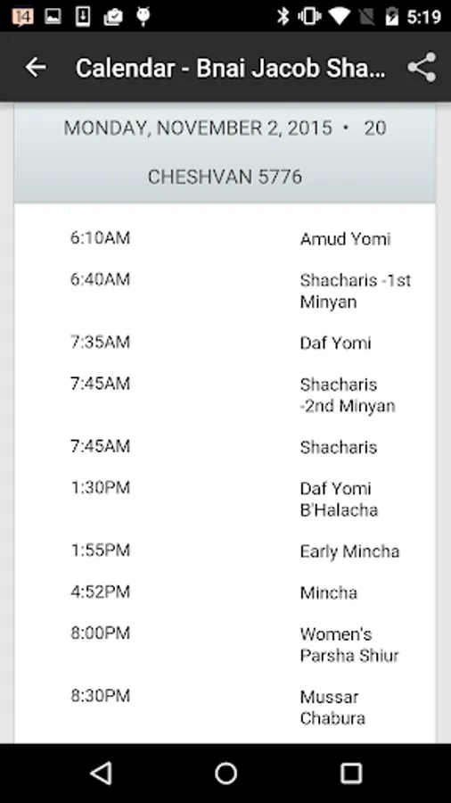 Bnai Jacob Shaarei Zion app keeps you up-to-date with the latest news, events, minyanim and happenings at the synagogue. It also gives you the localized zmanim for the shul's location and the users current location.