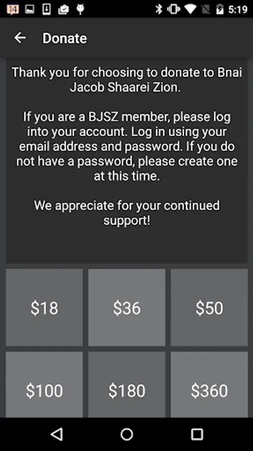 The app lets members view and pay their member dues online. It also allows them to update their profiles, accounts and other information. It enables general online donations.