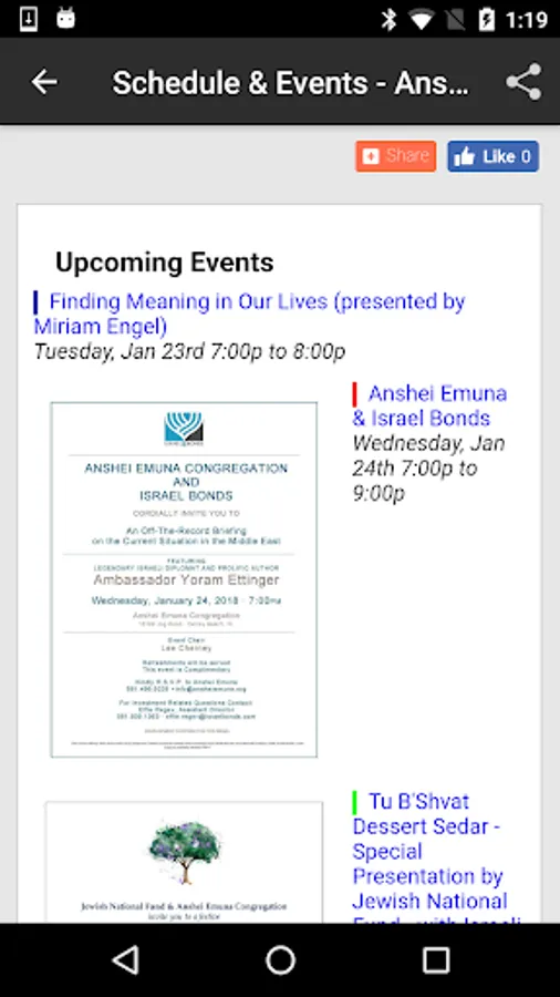 Anshei Emuna of Delray Beach app keeps you up-to-date with the latest news, events, minyanim and happenings at the synagogue. It also gives you the localized zmanim for the shul's location and the users current location.