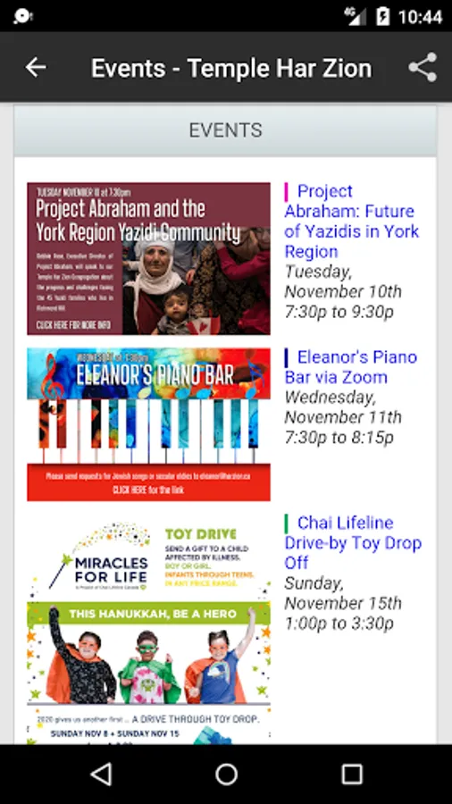 Temple Har Zion app keeps you up-to-date with the latest news, events, minyanim and happenings at the synagogue. It also gives you the localized zmanim for the shul's location and the users current location.