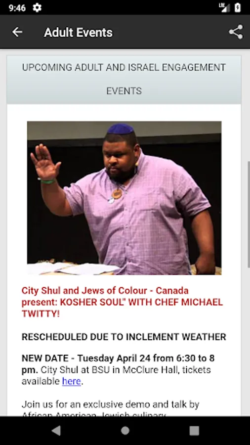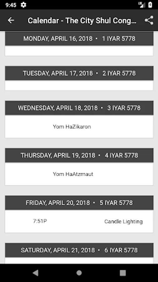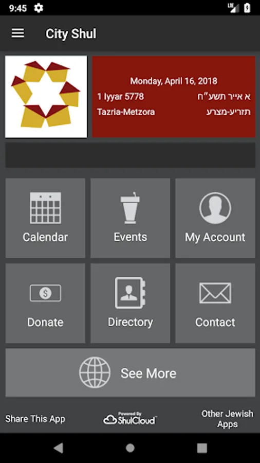 City Shul app keeps you up-to-date with the latest news, events, minyanim and happenings at the synagogue. It also gives you the localized zmanim for the shul's location and the users current location.